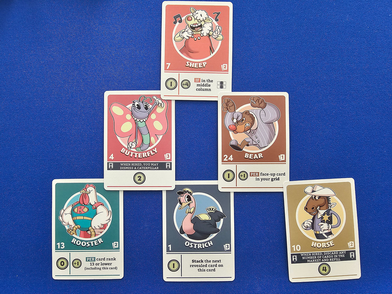 Every spherical, gamers will deal out playing cards from their deck to type a 3×2 grid in entrance of them. (Some playing cards will modify this association barely; extra on that later.) Gamers don’t have any management over the order the playing cards come out, however the order is necessary because it impacts the worth of the playing cards usually.
