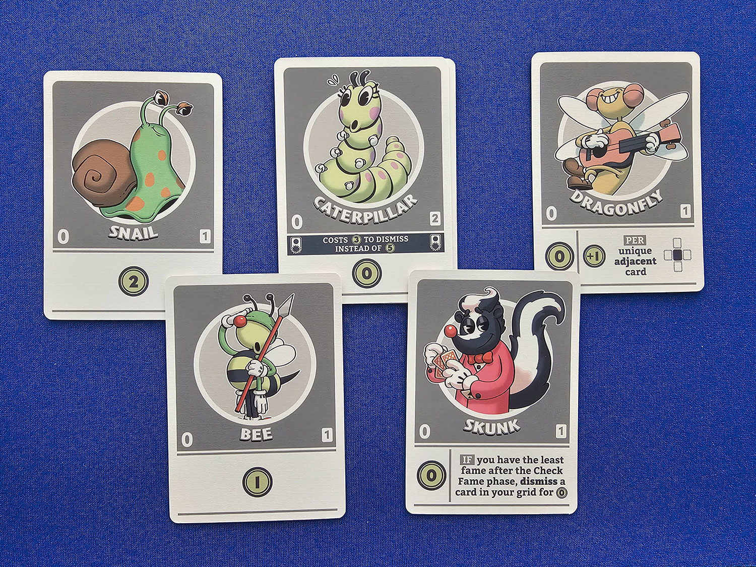 The beginning Dragonfly card, for instance, grants factors for distinctive orthogonally adjoining playing cards, so if that lands in one of many corners, its worth is decrease than if it’s within the heart. After everybody has flipped over their toons (GET IT?), all gamers set their fame worth for the spherical.