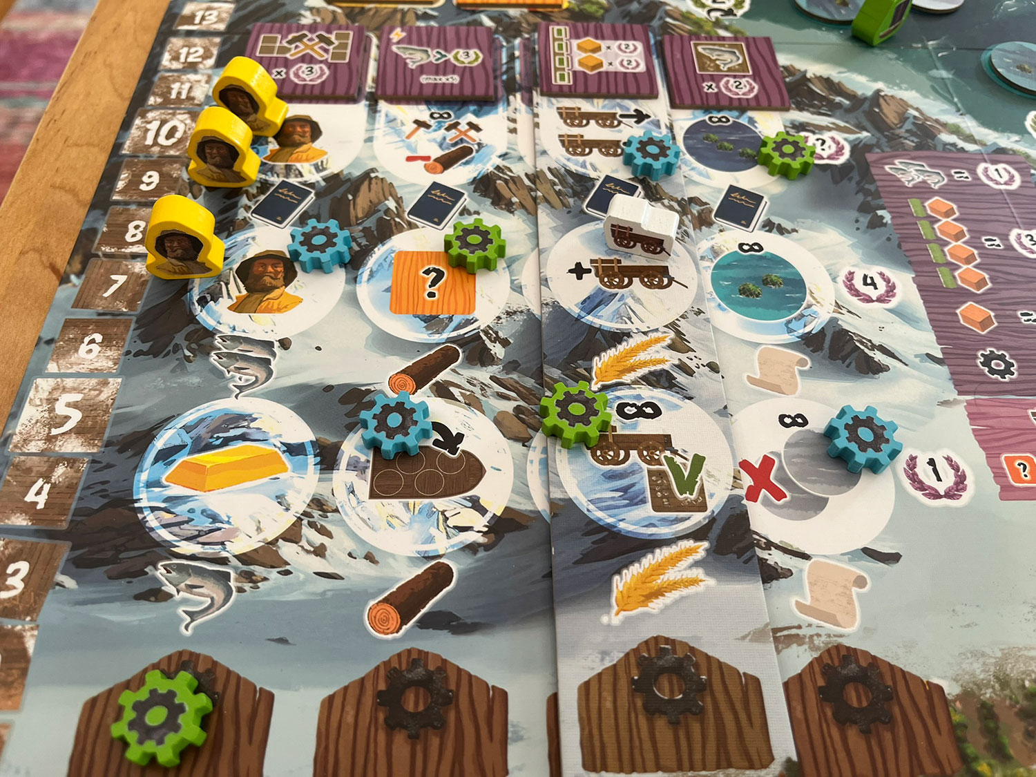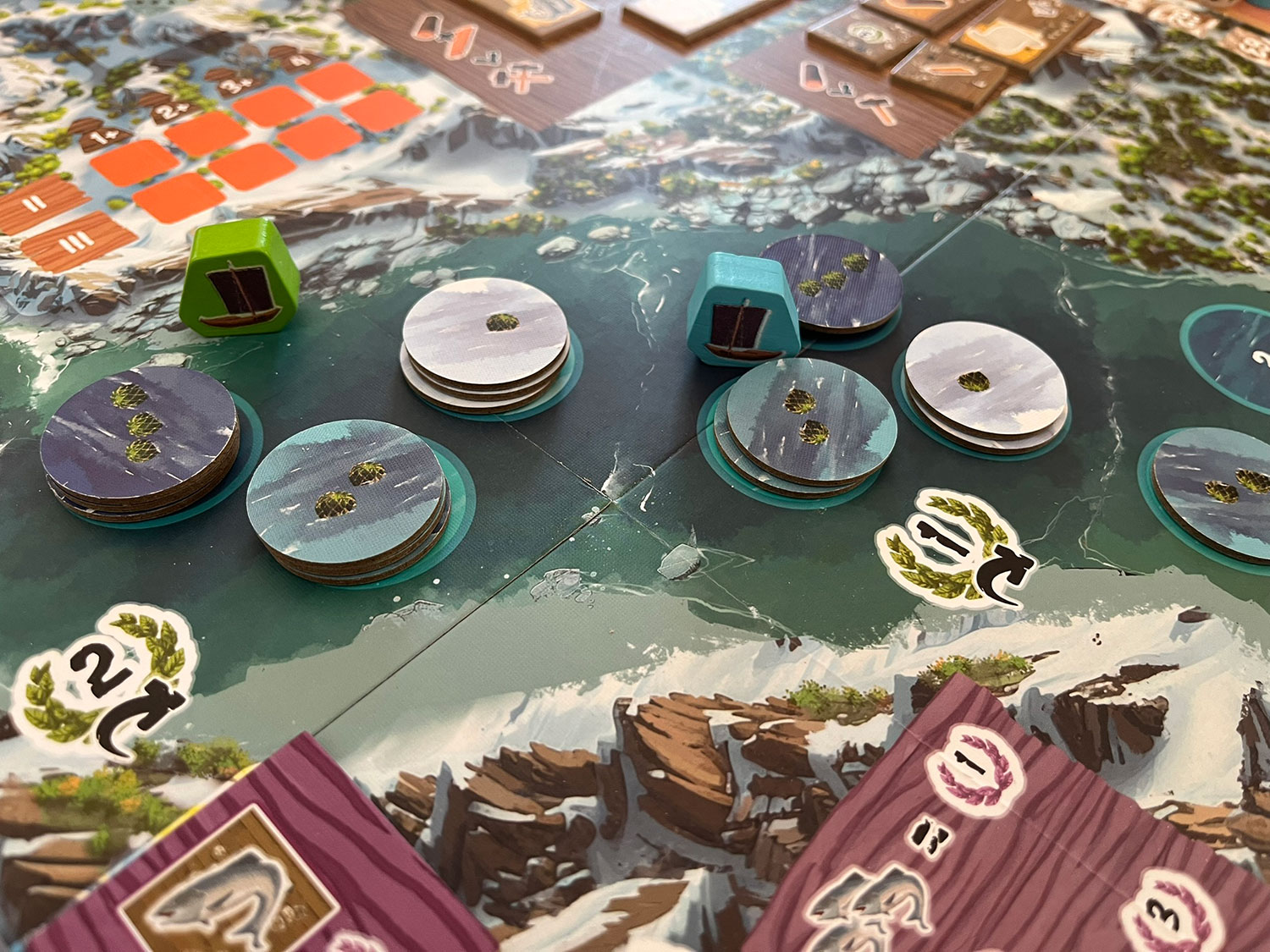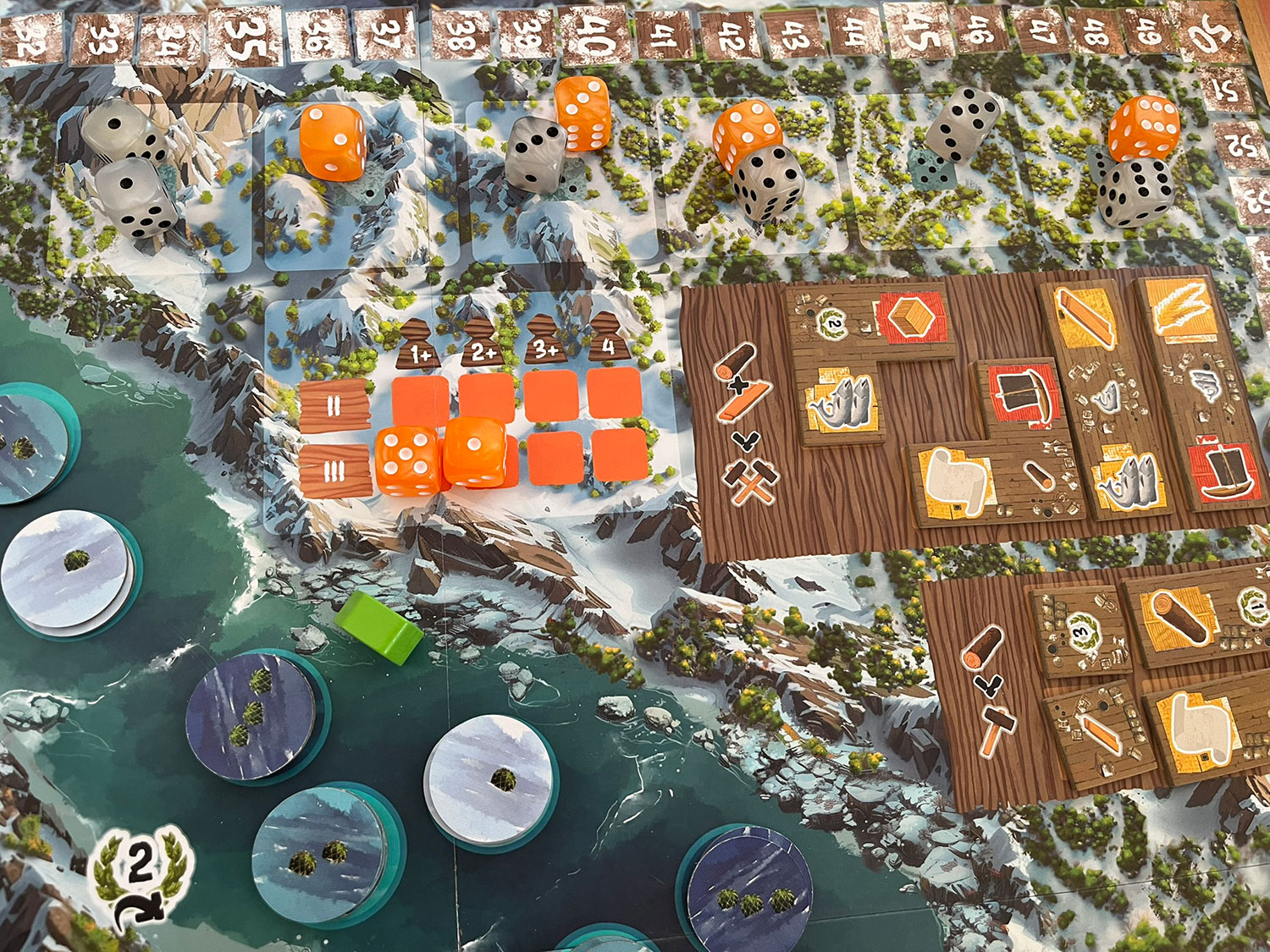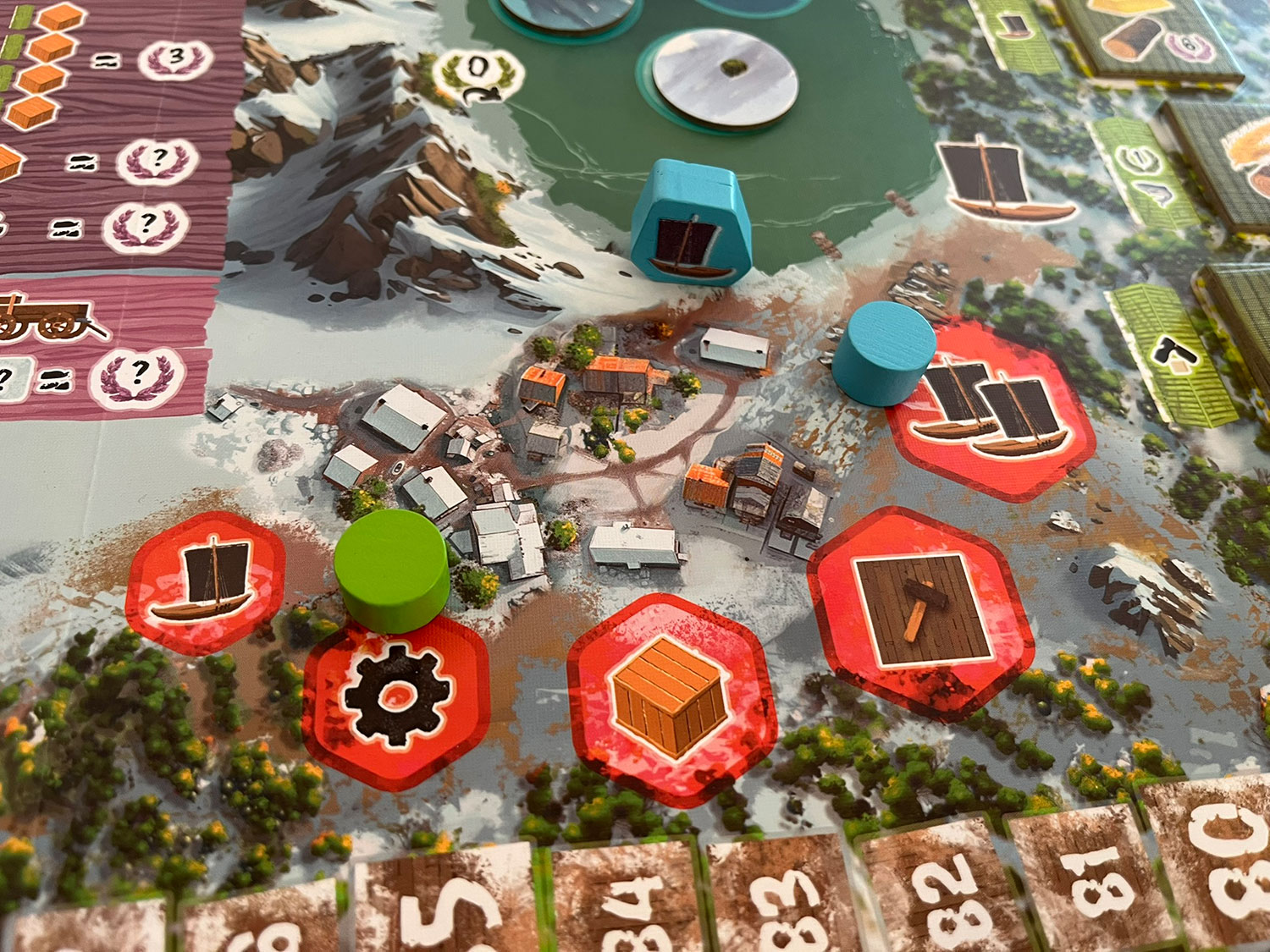 The middle of Saltfjord is a 6×6 grid on every playerboard that enables activation of icons on particular rows or columns relying on the pip-value of drafted cube.