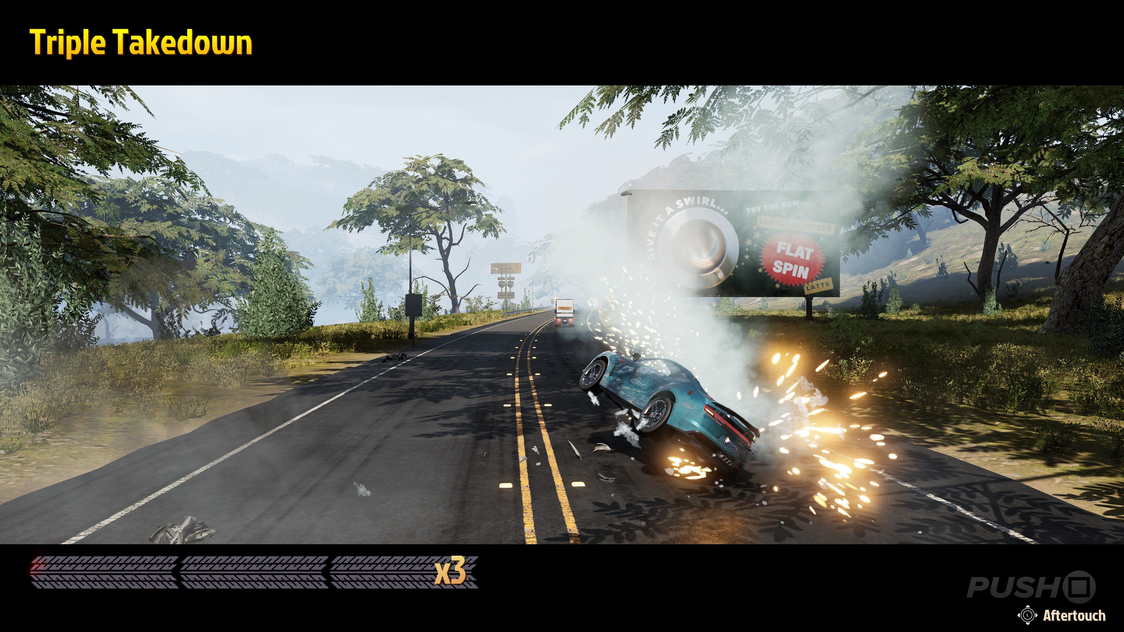 Sure vehicles can solely be unlocked by discovering and taking them down within the open world, there are tons of of billboards to smash by way of, and a ticker on the backside of the display screen retains you knowledgeable of participant information and different issues of observe.